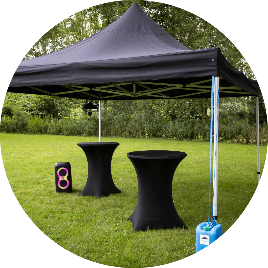 Of je nu één easy-up tent huurt of meerdere koppelt tot een grote overkapping, wij zorgen voor beschutting en uitstraling op elke locatie.