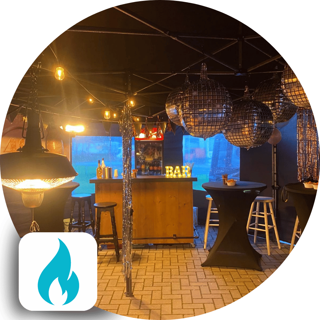 Van comfortabele loungebanken tot statafels en terrasverwarming. Wij zorgen dat jouw gasten fijn zitten en het aangenaam warm hebben.