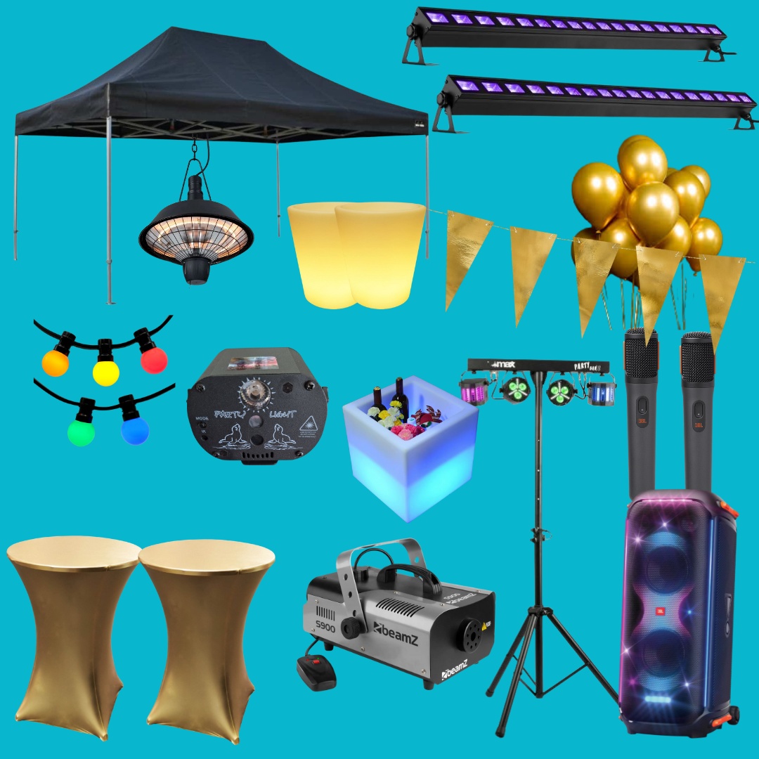 Speakers, licht, bar of tent? Huren is simpel, bezorgen optioneel. Jouw feest, jouw regels.