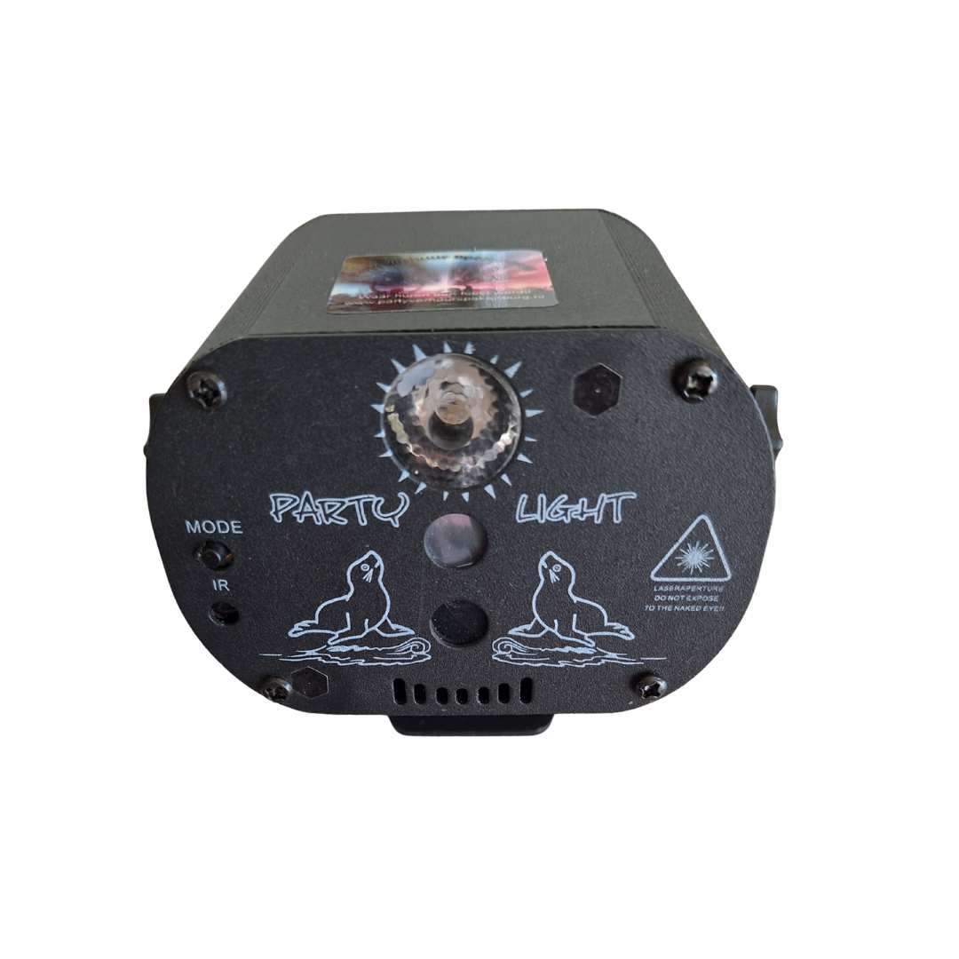 Kleine maar felle laserprojector met bewegende patronen – groot effect, mini formaat.